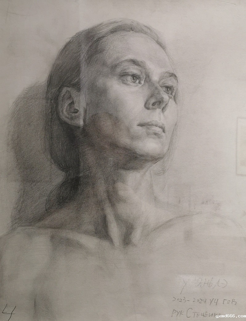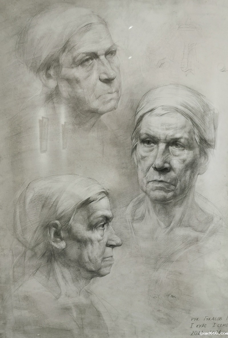 本次展出的40余幅素描与油画习作,生动展现了契斯恰科夫教学体系的严谨传承——从精准的肌肉解剖研究,到拜占庭艺术传统的多层色彩构建技法,再到苏联学派素描的深厚造型功底,每一笔触都凝聚着对经典绘画语言的深刻理解与精湛掌握。