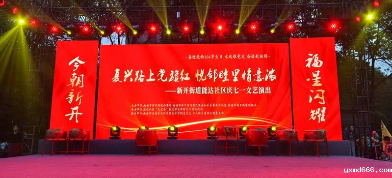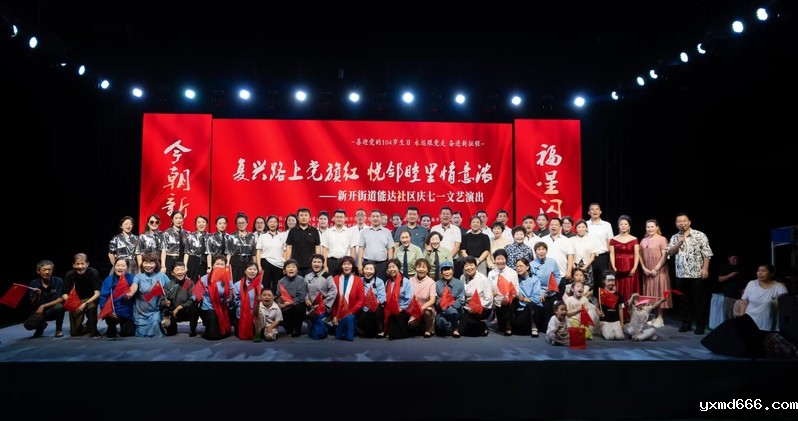 在喜迎中国共产党成立104周年之际,美术学院党总支与新开街道能达社区党委携手开展“复兴路上党旗红,悦邻睦里情意浓”党建文艺汇演活动。活动现场,在学院党总支书记黄斌斌、副书记许锐指导下,六名学生干部以饱满的精神状态,为观众带来了气势恢宏的朗诵节目《盛世中国》,生动展现新时代青年的精神风貌。此次文艺汇演以艺术为载体,搭建起校社联动的红色桥梁,以文艺形式抒发爱党爱国情怀,共庆党的生日,表达“永远跟党走”的坚定信念。