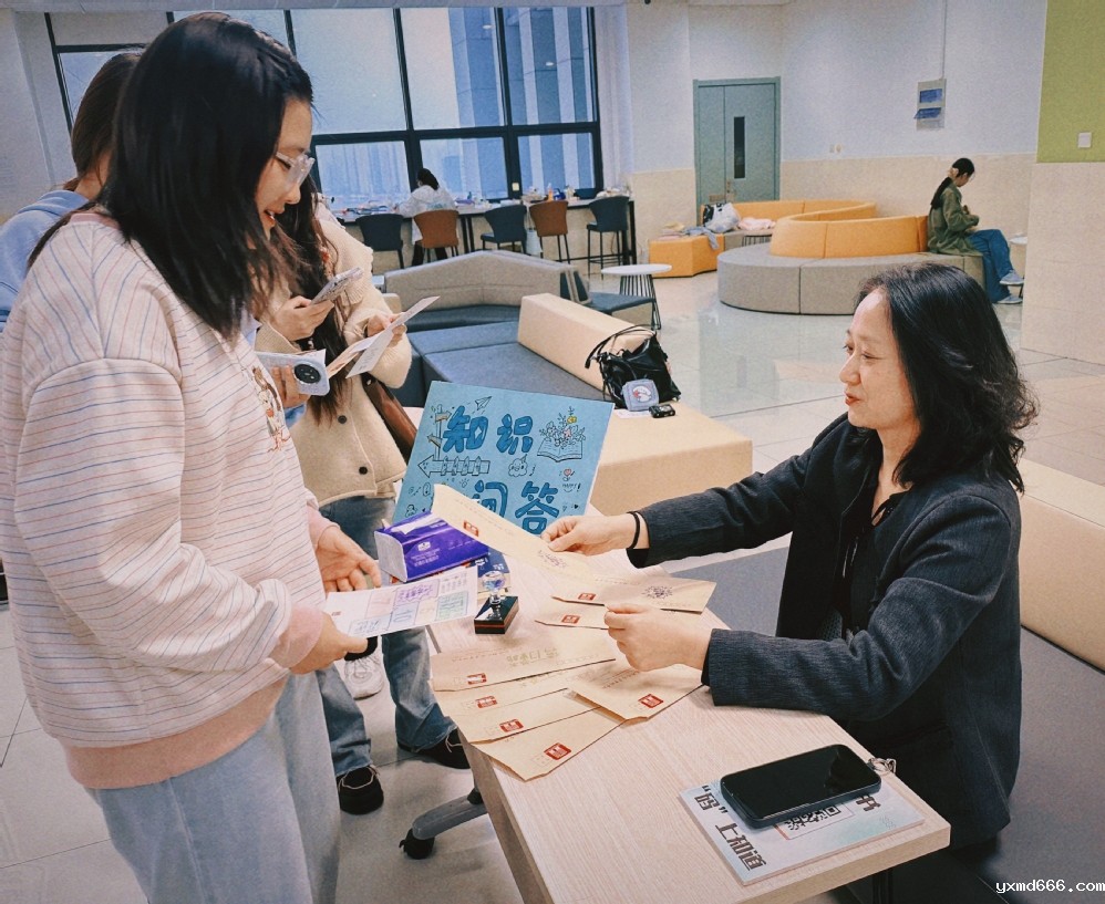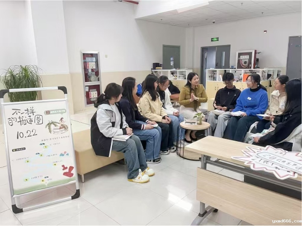 图书馆馆长陈琳亲临活动现场,与同学们进行了短暂轻松的座谈。她就图书馆馆藏布局、图书分类等内容作简要介绍,向新同学宣传图书馆开展的一些列阅读推广活动。通过交流了解新生的阅读兴趣,同时,倡导同学们投入书本,探寻不一样的领域,体验千万种不一样的人生。至此,最后一站“不一样的书适圈”圆满收官。